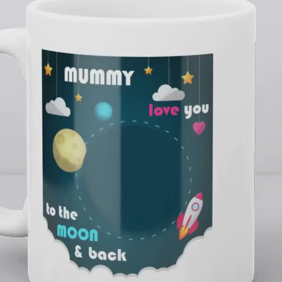 Celebrate the best person in your life with a mug that says it all. Add your favourite photo to this “Love You to The Moon and Back” ceramic mug for a personalised touch that warms hearts and brews, also available as a matching coaster and card