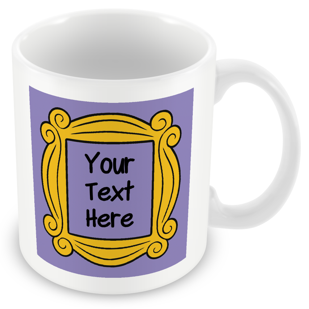 Personalised Photo Mug – Friends Frame Design This MUGGZ mug lets you upload a photo or add text into the iconic Friends-style frame, also available as a matching coaster and card