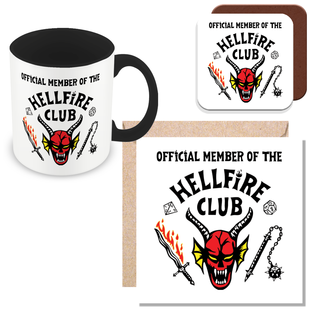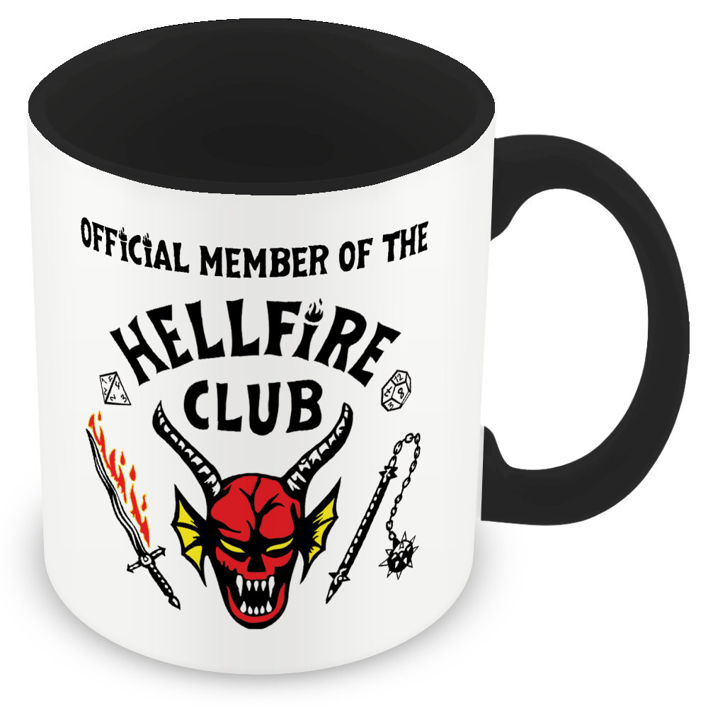 Hellfire Club This MUGGZ mug shows the slogan “Official Member of the Hellfire Club” in matching font and matching black handle and mug inside.